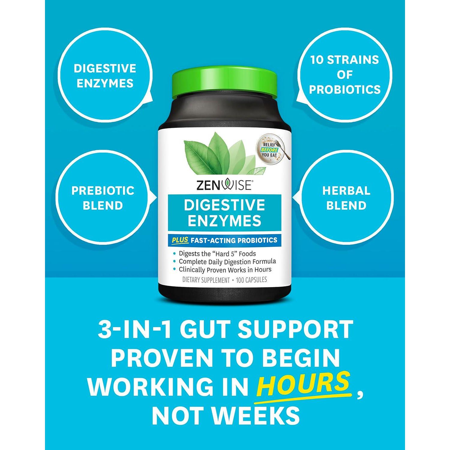 - Zenwise Health Zenwise Health Digestive Enzymes And Bromelain For Gut Health - Probiotic Multi Enzymes With Prebiotics And Probiotics For Women And Men For Digestive Health And Bloating Relief For Digestion - 100 CT